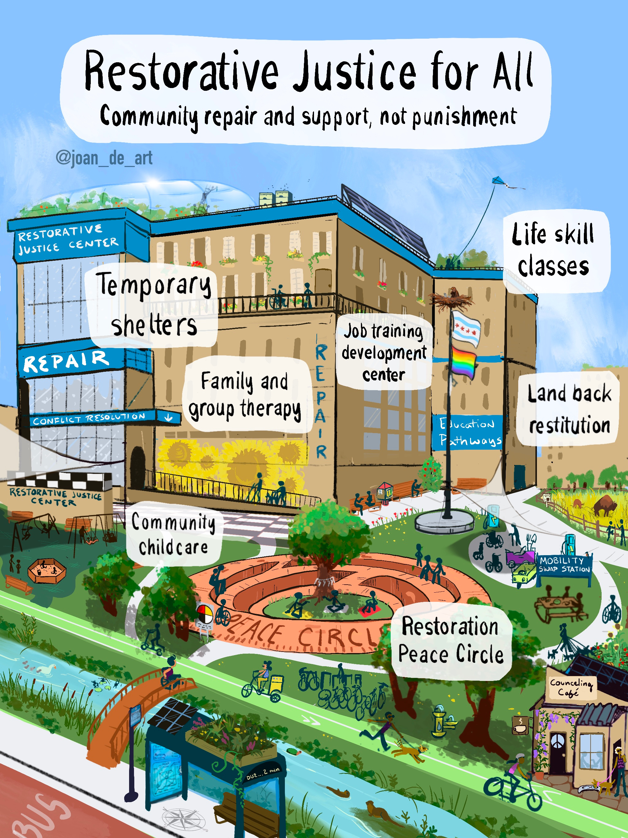 Restorative Justice created a culture of accountability for violence and harm, and we acted at the individual, community, institutional and societal levels. Survivors and their communities had a voice and autonomy over what restitution they needed to heal. Consequences, accountability, compensation, acknowledgement, responsibility, apology, repayment, loss of privileges and access to spaces replaced cages and cruelty.
