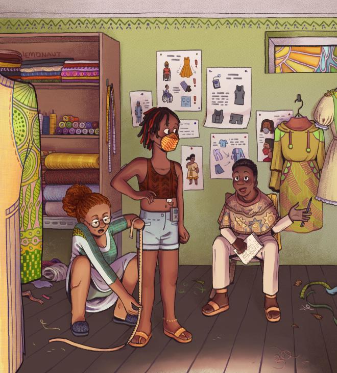 An illustration to one of the Solarpunk Prompts episodes, The Tailors [transcript]: